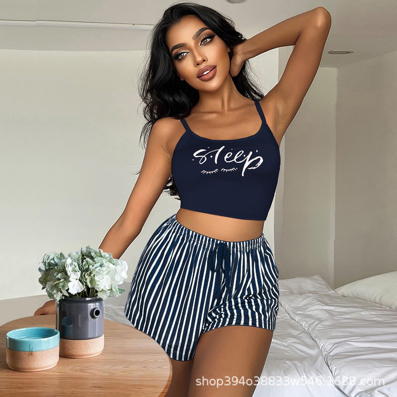 2 Pieces Pajamas sexy pajamas for women purple pjs Camisole Letter Print Crop Cami Top