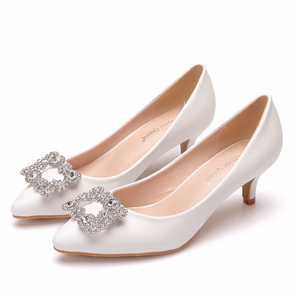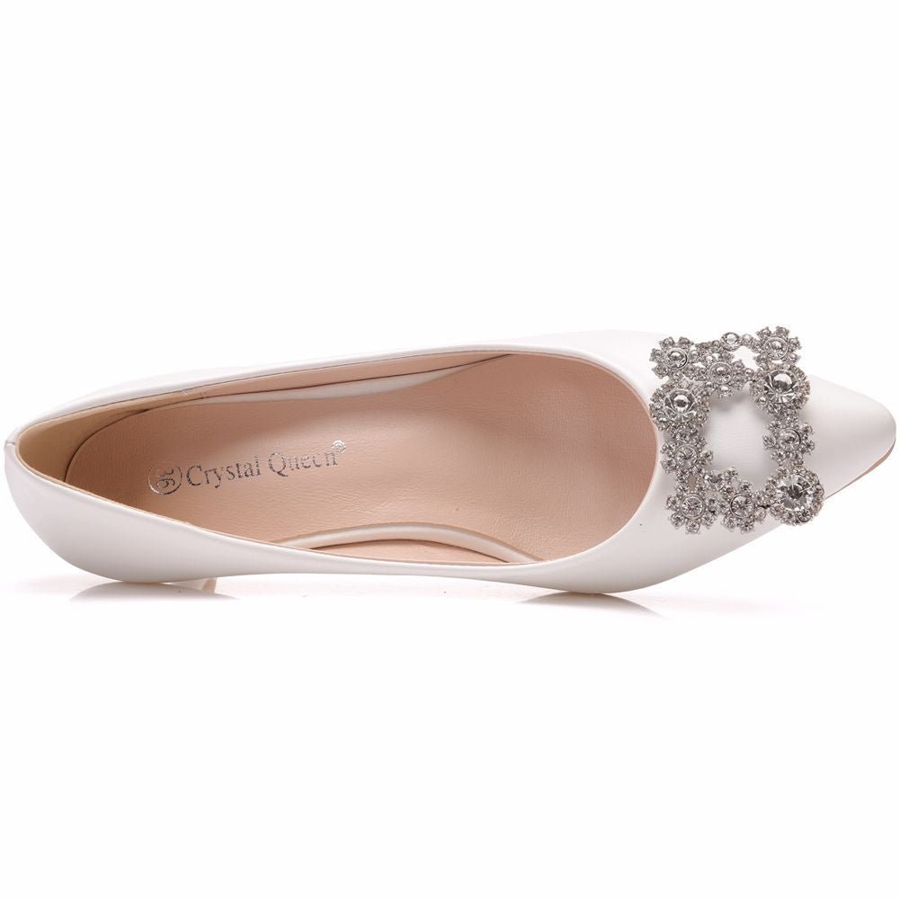 Perfect for any bride looking to add a touch of glamour to her big day, Crystal wedding pumps feature stunning square-shaped rhinestone embellishments on the top of the foot, adding a dazzling sparkle to your wedding ensemble. The high-quality construction ensures comfort and durability, so you can dance the night away without sacrificing style or comfort. The sleek and sophisticated design of these sandals also makes them a versatile addition to your shoe collection that you can wear on future occasions.