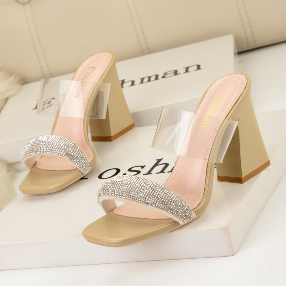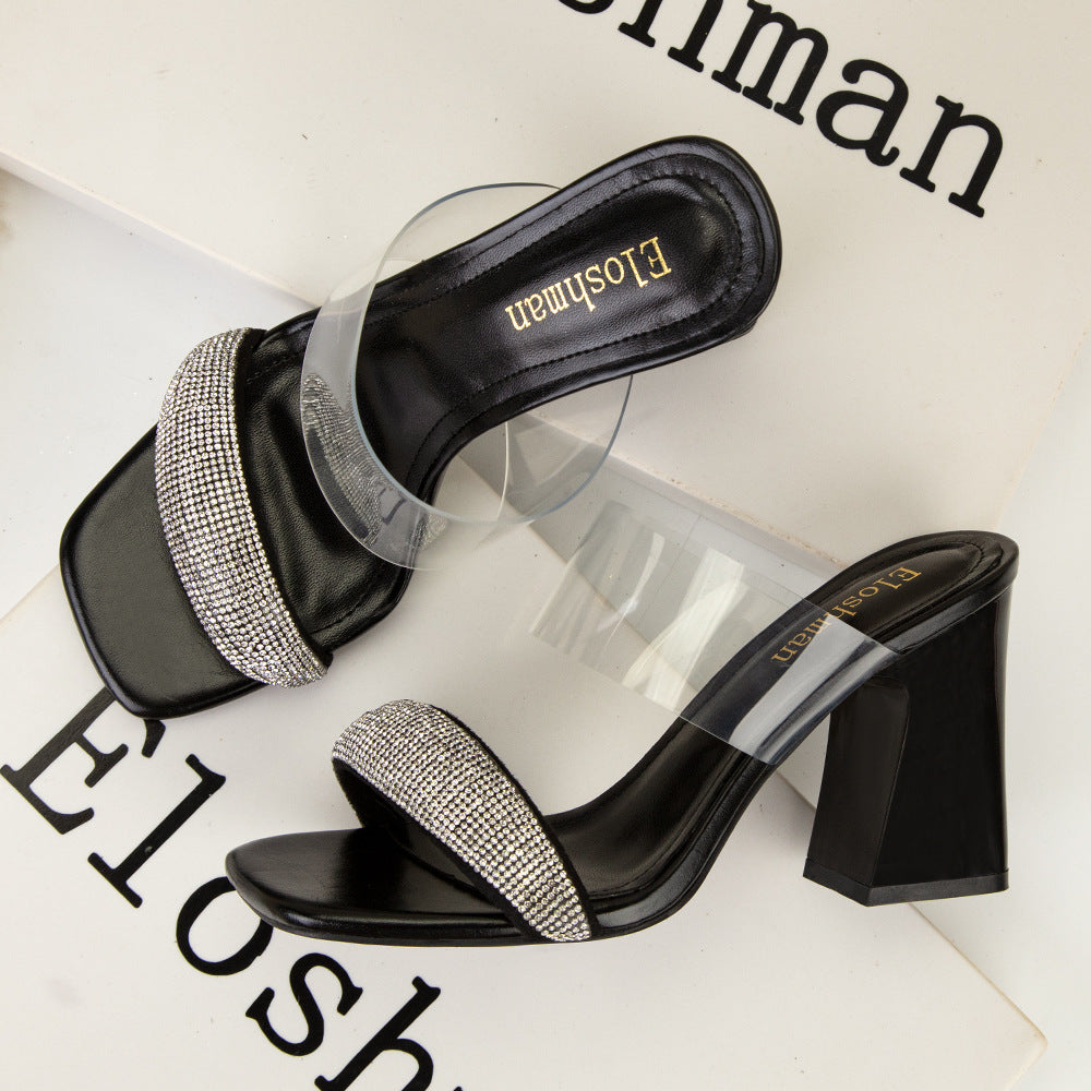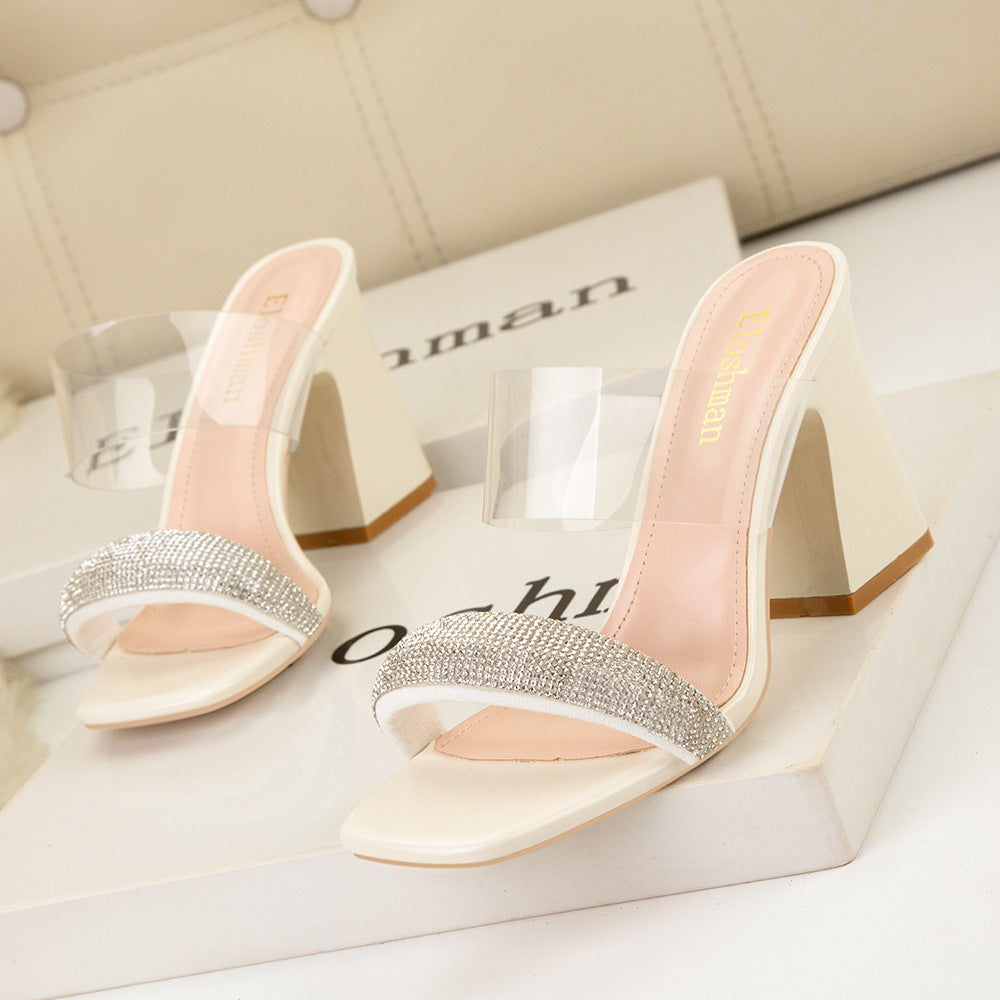 Complete your outfit with these elegant Crystal Rhinestone Sandals. Featuring glistening crystals and rhinestone accents, these transparent mules provide the perfect amount of shimmer to add to your look. With a sleek silhouette and a comfortable fit, you'll feel as good as you look.
