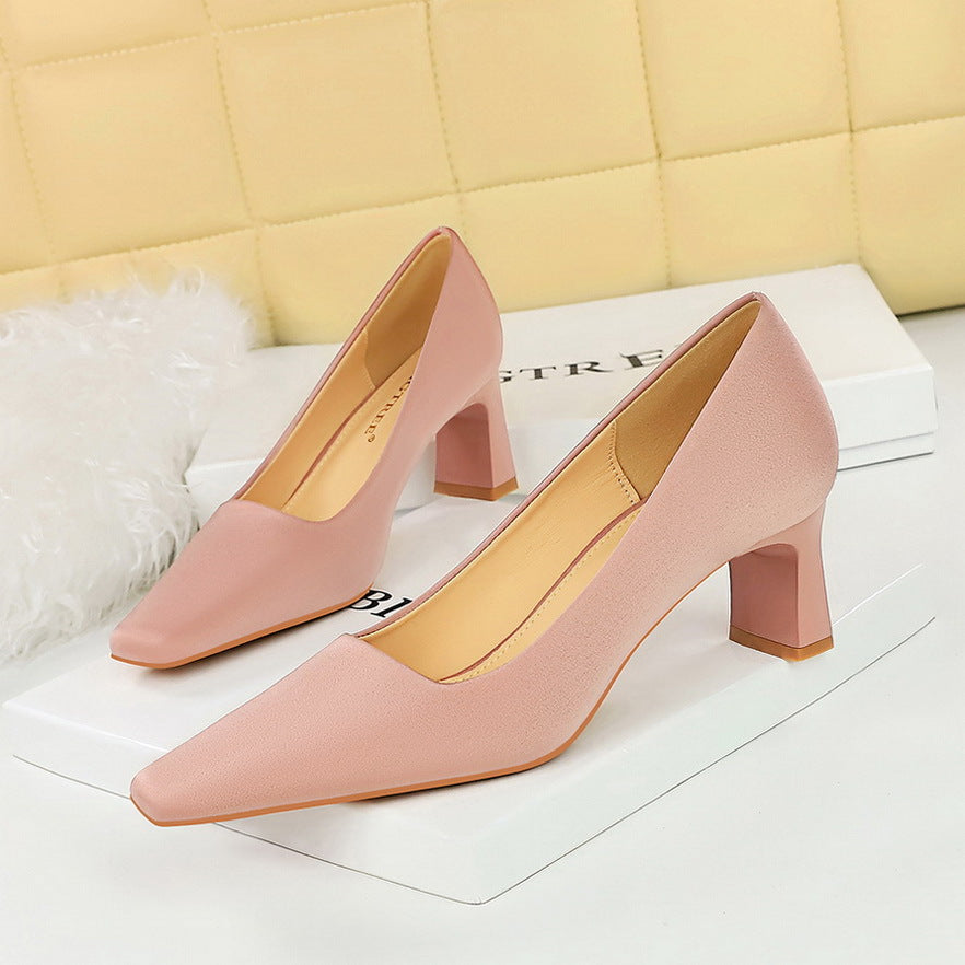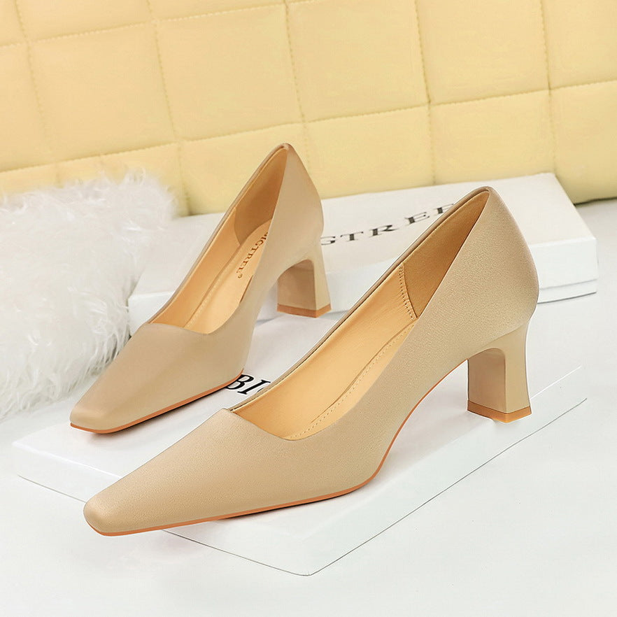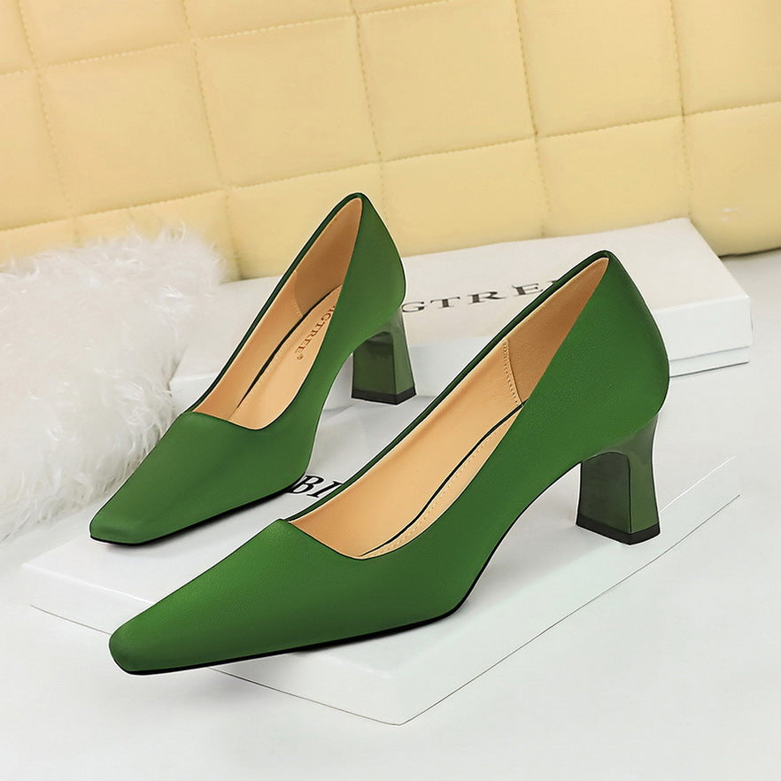Popular elements: European and American style, fashionable, minimalist, versatile, slim fitting, silk high heels, square toe