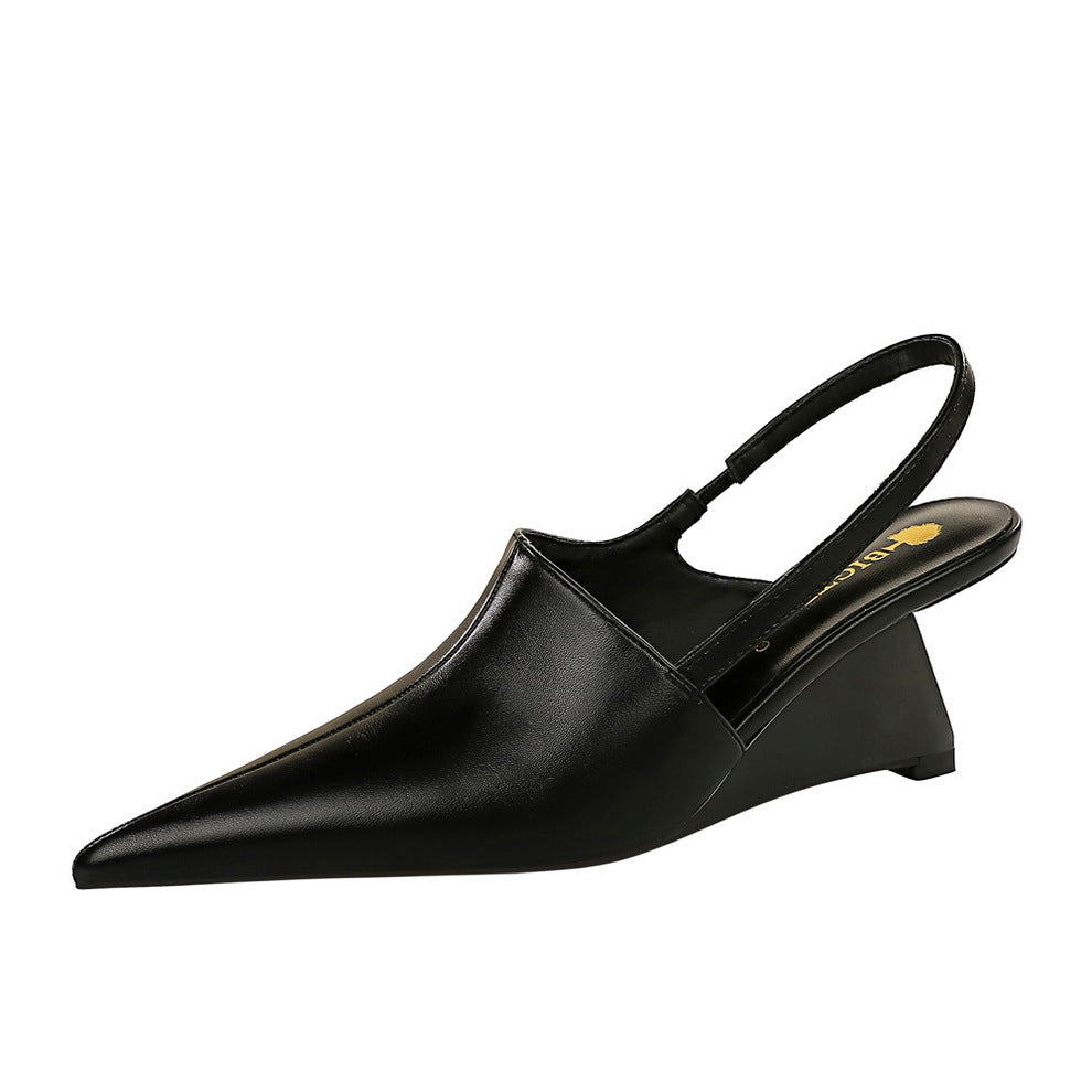 Hollow wedge heel deep cut toe shoes with back strap sandals and high heels