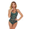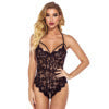 Women's lace bodysuit features stretch floral lace fabric, a bodysuit silhouette that flatters your curves, and adjustable cross straps for a perfect fit.