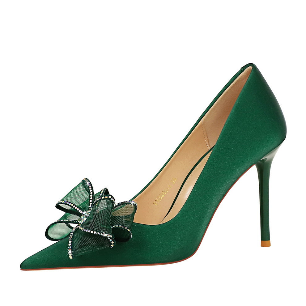Light luxury lace bow heels