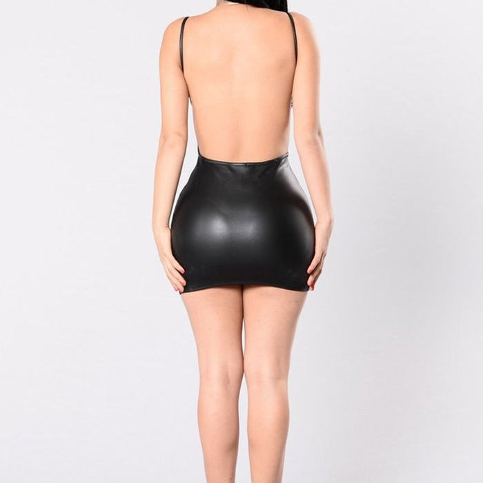 New style sling hip-wrapped black sexy patent leather backless mini skirt