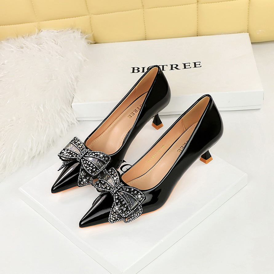 Popular elements: European and American style, fashion, banquet, rhinestone bow, elegant, light luxury, single shoes, women's shoes