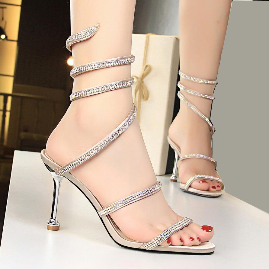 Snake Shaped Rhinestones Open Toe Stiletto Heel Womens Party Shoes