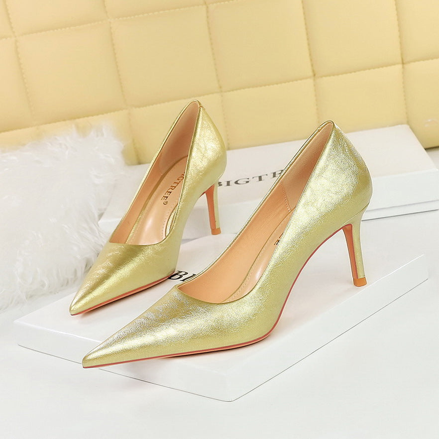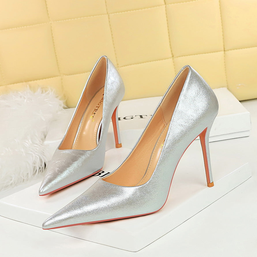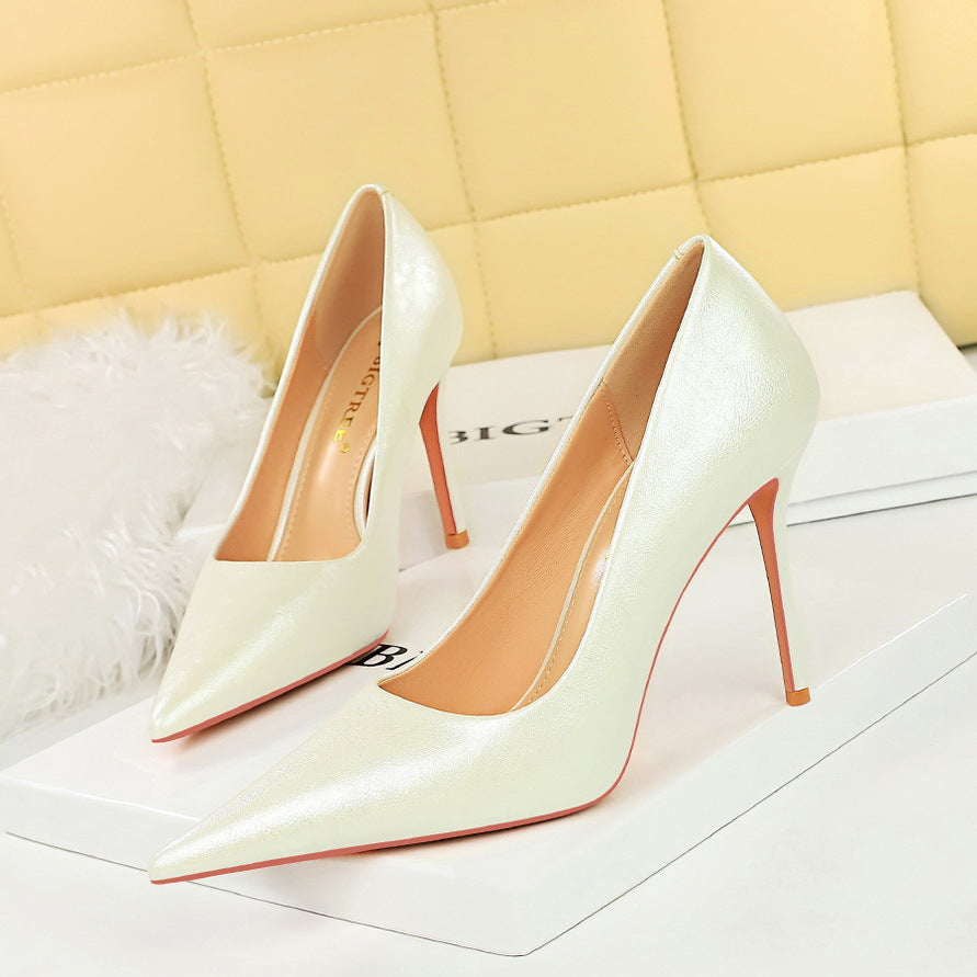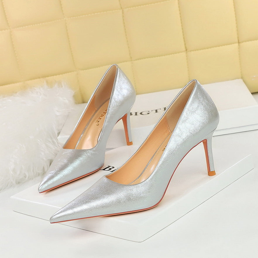 Spring and Autumn Retro Thin Heel Shallow Mouth Pointed Toe