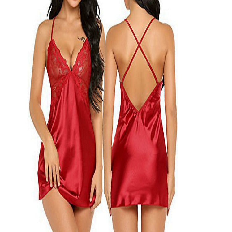Women's satin underwear petticoat sexy V-neck pajamas low-cut nightdress sexy doll skirt soft petticoat