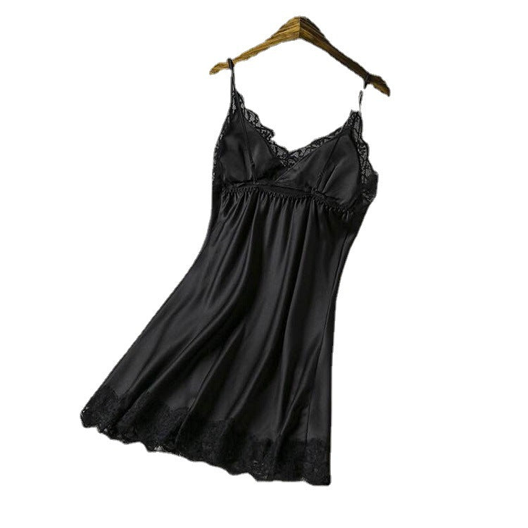 Black Skirt Women's Summer Satin Robe Ice Silk Strap Women's Sexy Underwear with Chest Mat