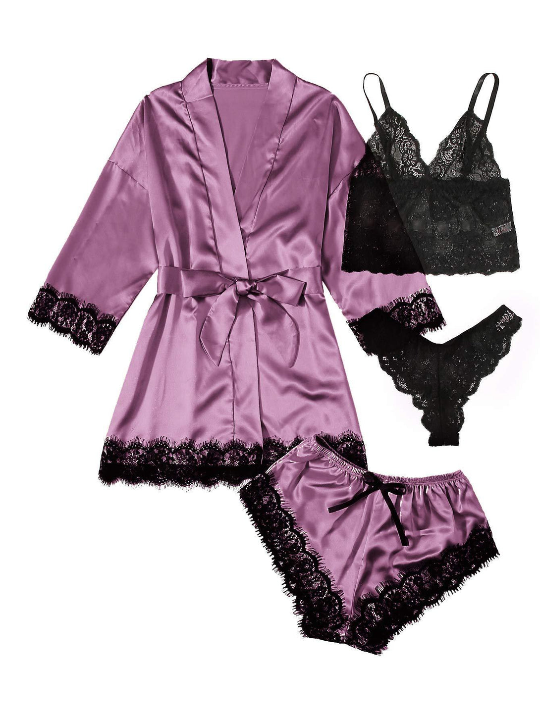 Women's Sexy Pajama Set 4-piece Satin Pajama Set Women's Pajama Robe Underwear