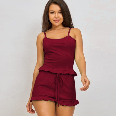 Ribbed pajama set, sexy and comfortable pajama, soft underwear pajama two-piece set, knitted pajama